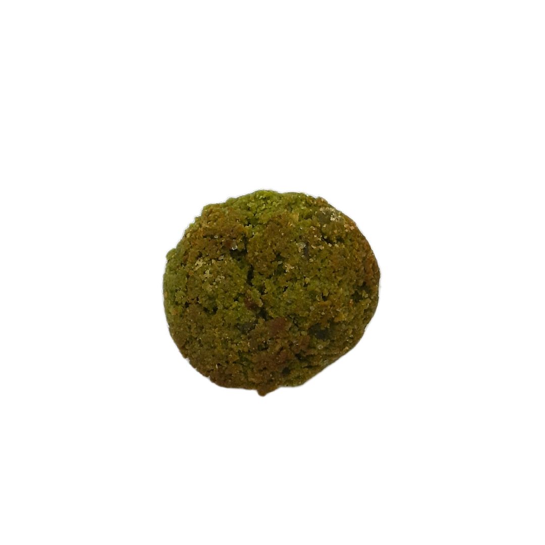 INGREDIENTS: Coco ratllat* (25%), fibra vegetal* (FOS), farina d’AMETLLA* (16%), mantega de karité*, aigua, llimona caramel·litzada* (6%) (Sirops de glucosa* i de blat de moro*), tè matcha* (2%) i gingebre* (1%). INFORMACIÓ NUTRICIONAL PER 100 g: Valor energètic: 2180 kJ/526 kcal · Greixos: 46,4 g, dels quals saturats: 25,5 g · Hidrats de carboni: 10,8 g, dels quals sucres: 8 g · Fibra alimentària: 22,9 g · Proteïnes: 5,4 g · Sal: 0,05 g. POT CONTENIR: Llet, ou, mostassa. Es considera un producte amb traces de gluten en la seva venda a granel. *Ingredients procedents de l’agricultura ecològica. Conservar en lloc fresc i sec. CERTIFICAT ECOLÒGIC PER CCPAE