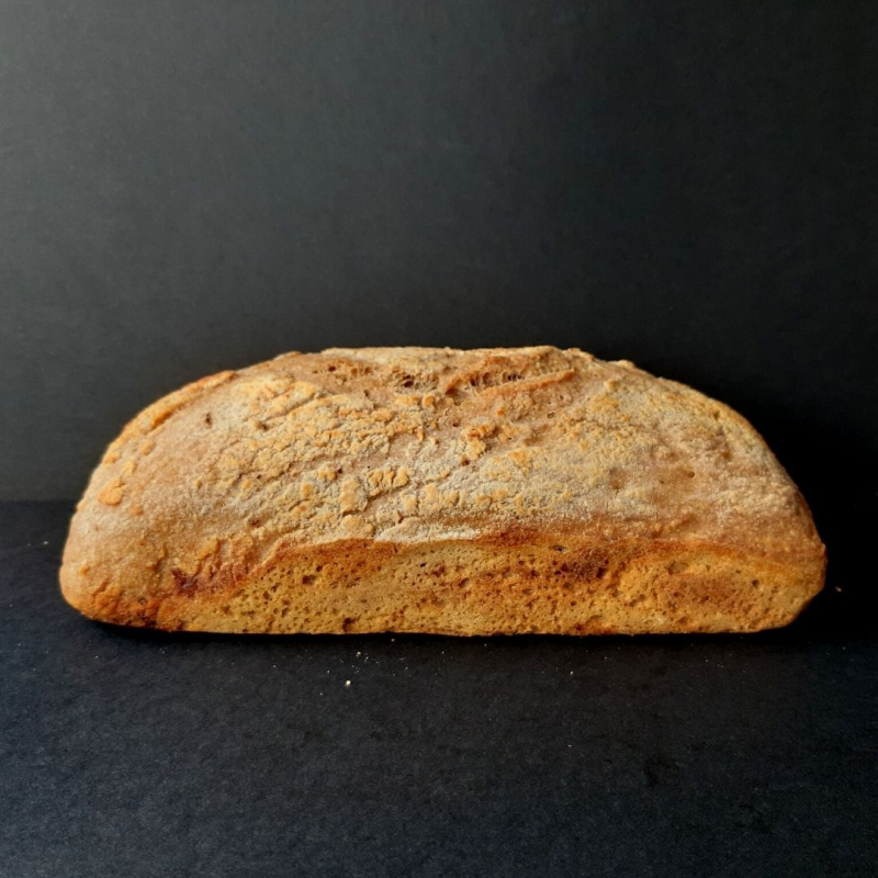 INGREDIENTES: Masa madre de trigo sarraceno* (50%), harina de trigo sarraceno* (25%), agua, sal del Himalaya y psyllium*(plantago psyllium). INFORMACIÓN NUTRICIONAL POR 100g: Valor energético: 752kJ/177kcal · Grasas: 1,6g, de/