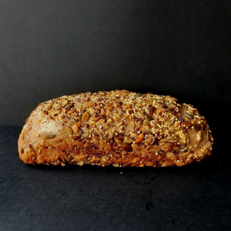 INGREDIENTS: Massa mare de fajol* (41%), farina de fajol* (21%), aigua, mix de llavors* (11%) (mill, lli marro, pipas de carbasa i pipes de girasol), llavors de girasol* (8%), sal de Himalaya i psyllium*(plantago psyllium
